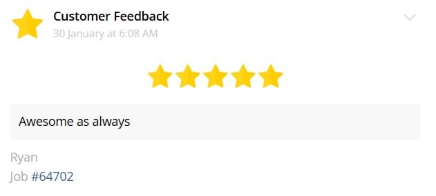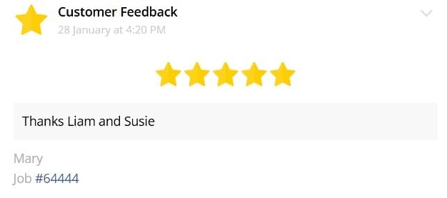 On behalf of my mum, thank you so much for the job you and the team did today. My mum is so happy. You provided great service, good advice, cleaned everything away and were very courteous and professional. Please extend our thanks to the team.